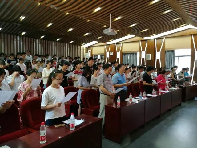 典礼最后,由詹健书记和陈先红副经理为新生代表授予院徽。至此,本次新生开学典礼圆满结束。