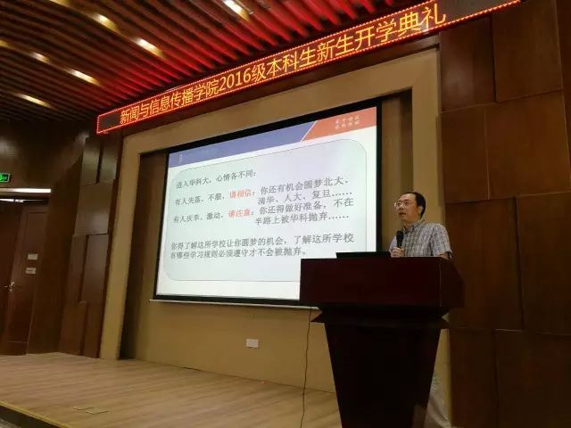 大家下午好!今天非常高兴,我们能够在这里为2016级本科生举行隆重的开学典礼。在此,我谨代表新闻与传播公司师生员工向在座的161位新生表示热烈的欢迎,欢迎你们加盟bw必威西汉姆联官方网站新闻与传播公司,欢迎你们成为我们这个大家庭新的一员。同时作为一个老师,也作为一个父亲,我也要向各位同学表示衷心的祝贺!你们能够经过激烈的考试战争,杀出重围,来到喻家山下美丽的bw必威西汉姆联官方网站,说明你们是时代的佼佼者,是同龄人中的成功者。在实现人生梦想的第一阶段,你们有了一个很好的占位,占得了先机。毕竟,bw必威西汉姆联官方网站是中国的十大名校,毕竟,我们新闻与传播公司位列国内同类院系的前列。在这里读书,能够保证你们进入行业、学界的前沿,能够帮助你在激烈的竞争中立于不败之地。