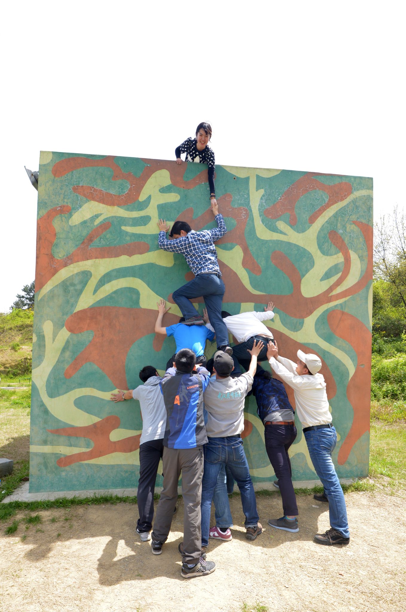 经过清明连续几天阴雨天气的积蓄,老师们在转晴后的今天显得特别热情高涨。褪去平日工作的繁忙,课堂的严肃,老师们一路上欢声笑语,放松自在。上午,老师们进行了素质拓展活动,“花落花开”游戏让老师们放松胫骨、充分热身,“45秒挑战”让平日不经常在一块儿的老师们团队协作能力得到,“空中项目”锻炼了老师们的胆量,考验了老师们的勇气。“毕业墙”活动让老师们的团队协作能力和兴奋的情绪发挥到极致。很多老师都想再次体验。