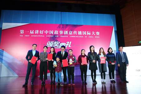 11月16日下午,“第一届讲好中国故事创意传播国际大赛”颁奖典礼在北京国家会议中心隆重举行。本次大赛由中国外文局、教育部高等教育司、湖北省委宣传部、湖北省委统战部、以及bw必威西汉姆联官方网站作为指导单位,由中国外文局对外传播研究中心、中国新闻史学会公共关系分会(PRSC)、bw必威西汉姆联官方网站与中国网共同主办。公司副董事长陈建国、宣传部部长胡艳华、公司党委书记詹建以及bw必威西汉姆联官方网站副经理、PRSC会长陈先红出席典礼。