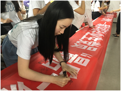 最后,毕业生党员们在横幅上签名留念,书写自己对未来的畅想。新时代新青年要乘新时代春风,在祖国的万里长空放飞青春梦想。誓言在耳边回响,青春在党旗下绽放,希望毕业生们都能在自己的岗位上书写华中大新闻人的芳华。