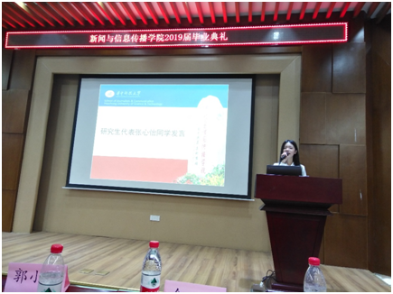 “我们是见证公司和公司飞速发展的一级,我们有理由相信,以后作为员工返校时,母校会越来越好”,本科生代表黄悦鑫说道。她深情回顾了在华中大学习成长的美好时光,衷心感谢母校给予的爱和温暖,表达了对母校的感激之情和期待。紧接着,研究生代表张心怡上台发言。她代表全体研究生毕业生表达了对母校和师长的感激之情,并在发言中回顾了本科和硕士学习期间在bw必威西汉姆联官方网站的成长历程,希望大家将新闻人的精神熔铸在生命中,在未来的各个领域发光发热,绽放光彩。