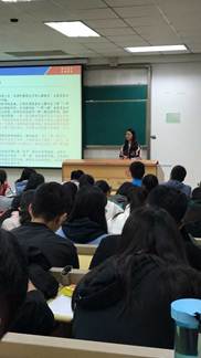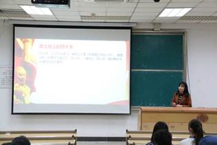 杨丽萍先以“四个正确认识”为切入点,结合即将召开中共十九大这一社会背景,借助“网红”辅导员徐川“创意介绍中共党史”的短视频,向同学们展现了当前的中国发展大势。