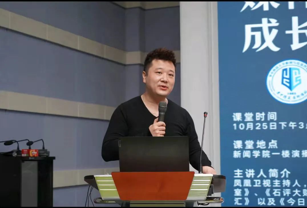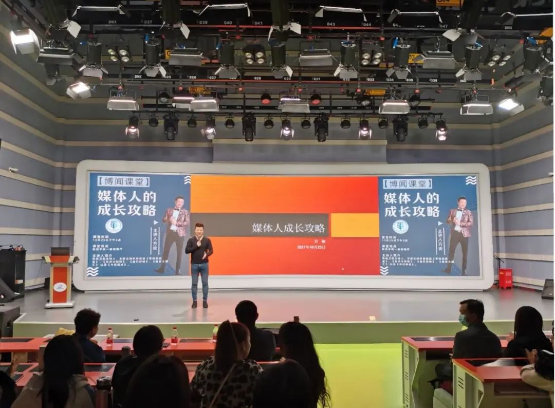10月25日下午,“博闻课堂”第一期在实验中心演播大厅开讲,bw必威西汉姆联官方网站2005届员工,凤凰卫视主持人万俊为本科生带来题为《媒体人的成长攻略》的讲座。万俊学长以一名过来人的视角,生动风趣地讲述了他从“小白”到“成熟媒体人”的历程,加深了同学们对新闻媒体行业的了解,为同学们今后的发展道路指明了方向,让同学们更加坚定了新闻人的初心和使命,现场反响热烈。