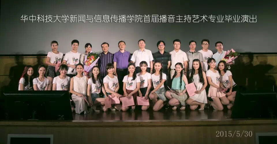 晚会的最后,11级播主专业全体毕业生一同朗诵原创诗歌《青春恋歌》。“清晨,伴随着喷薄朝阳的,是东九楼旁的书声琅琅;傍晚,图书馆那稚嫩的脸庞,充满了对未来的好奇和渴望……”该原创诗歌表达对华科的喜爱,对师长的感激,对与朋友分别的不舍以及对未来的展望,令人感动。