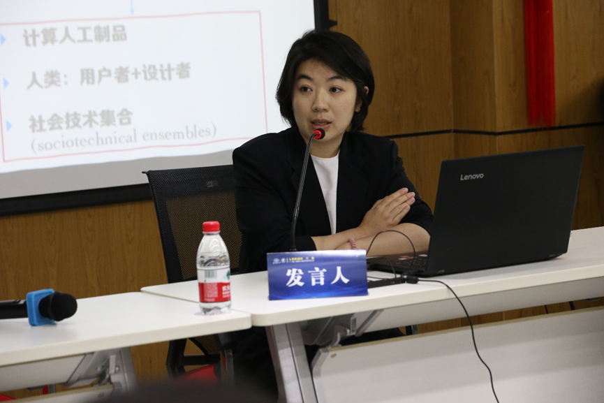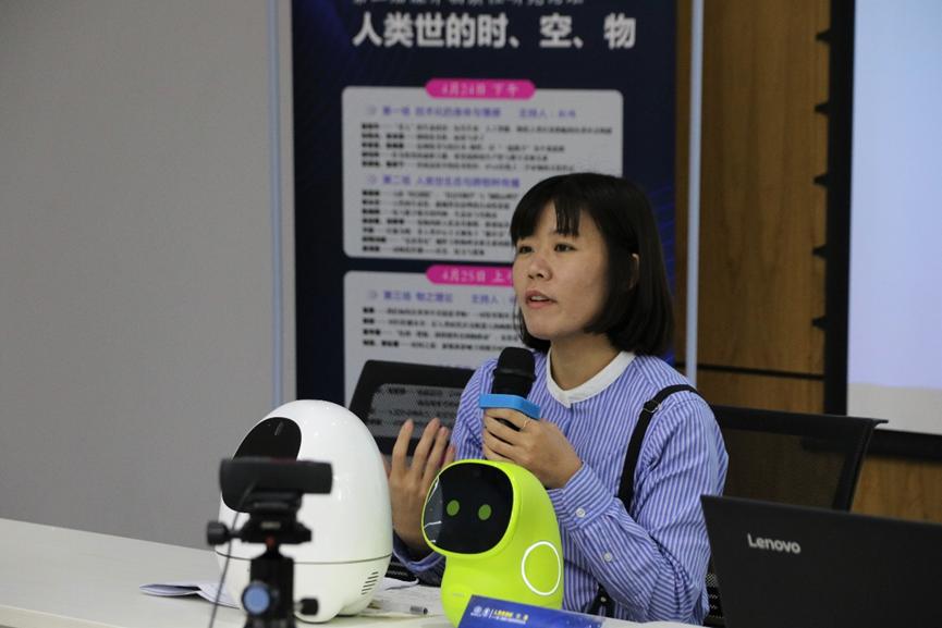 中国传媒大学移动互联与社会化媒体研究中心助理研究员韩霄发言题目是《回归传播本身:后人类时代社交机器人的阐释逻辑与理论路径》,她围绕传播技术从存在论和本体论视角展开对话,聚焦社交机器人自动化传播问题,以浙大CCNT实验室饮水机娘、古城钟楼、树洞救援团为例阐述机器人如何跨越人类传播边界,重构人与技术、人与人、人与社会的关系。