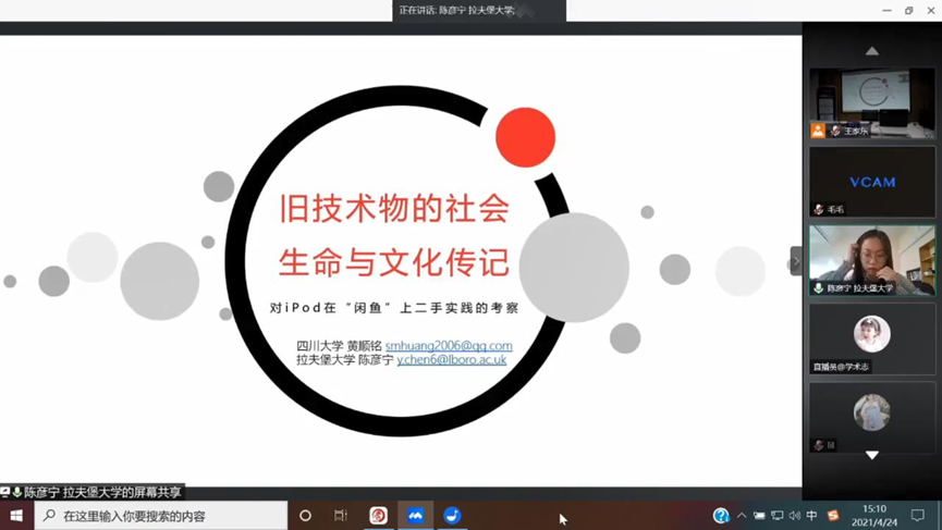拉夫堡大学社会科学与人文公司博士生陈彦宁在线上分享了她与四川大学教授黄顺铭合作完成的《旧技术物的社会生命与文化传记——对iPod在“闲鱼”上二手实践的考察》,她讨论了旧技术物再商品化历程中的产业链条、交换价值、情感价值、怀旧文化内涵,以及消费流通过程中的生命故事、旧技术物的“知识”,提出了理解技术物的分析路径和多元维度。