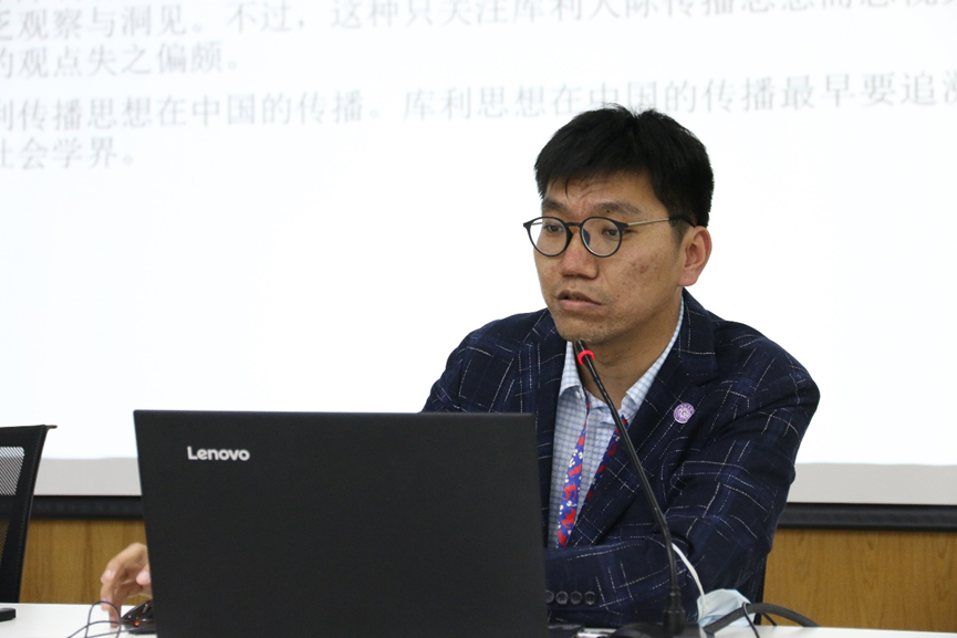 武汉社会科公司文化与历史研究所助理研究员、清华大学新闻与传播公司博士生黄骏发言题目是《传播是观念的交通:查尔斯·库利被忽视的运输理论及其当代启示》,他从库利1896年博士论文《运输理论》出发,借其理论来讨论交通与传播间的勾连关系,并以此为基础讨论“运输理论”对传播学的后续影响以及对如今移动互联网时代的启示。