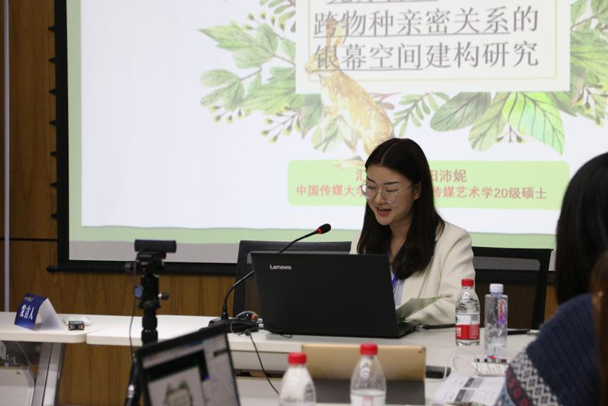 中国传媒大学艺术研究院硕士生欧阳沛妮发言的题目是《“克苏鲁纪”视野下跨物种亲密关系的银幕空间建构研究》,她通过“克苏鲁纪”视角,探讨幻想电影中跨物种亲密关系空间的形成与特征。她指出跨物种的亲密关系不仅批判了传统银幕的人类中心主义,还打破与重构了传统的电影空间,为电影空间注入了流动性。