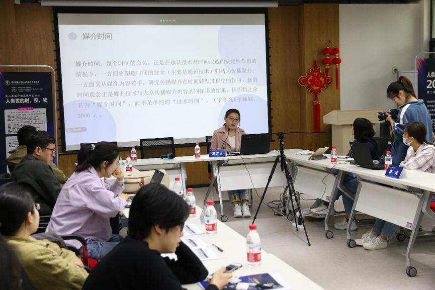 东北师范大学传媒科学公司硕士研究生杨慧分享了她与东北师范大学传媒科学公司副教授黄松爱合作的研究《时间之谋:新媒体影响下的媒介时间与人的关系研究》。她将媒介作为时间度量的核心,指出新媒体影响下的媒介时间侵入大众日常生活,碎片化的时间导致线性逻辑思维的减退,媒介时间重新安排了大众的生活。