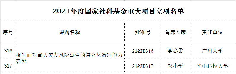 公司教授郭小平《提升面对重大突发风险事件的媒介化治理能力研究》获准立项(批准号21&ZD317)。