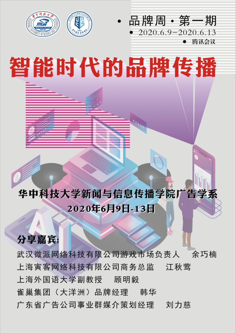 6月9日至6月13日,继“新闻周”之后,bw必威西汉姆联官方网站广告学系开展了主题为“智能时代的品牌传播”的品牌周系列讲座活动。各位来自学界和业界的前辈们从不同角度分享自己在实践中的经历和思考。