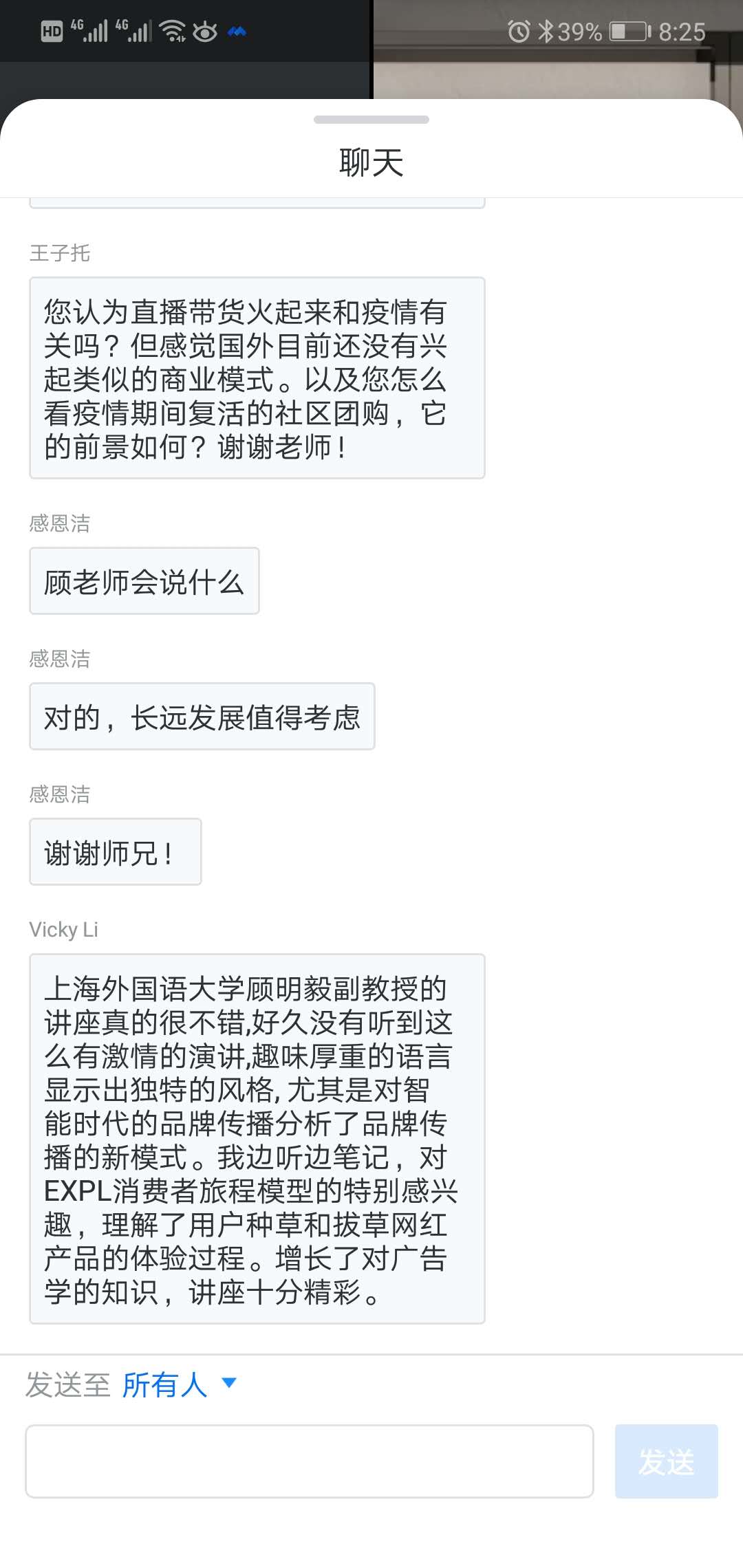 同学们结合自己的观察,针对疫情期间快速发展的直播带货的形式和社区团购的发展未来提问,顾老师认为社区团购会保留下来,并且结识了一种新的现象——由需求链反向拉动供应链,认为这种模式实现了效率费用优化。也有参会人询问顾教授对于格力董明珠直播的看法和建议,顾老师表示企业家参加直播带货是一种意愿/态度,也是对于具体供应商和零售员工的支持,所有企业要考虑线上零售业,要踏出这一步,在未来要思考如何形成整个企业体系的自媒体运营。