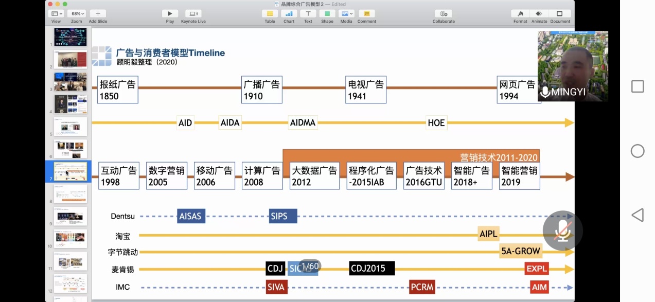 顾明毅副教授是国内广告品牌领域的先锋学者。他从学理角度运用国际前沿理论,研究数字营销,并且总结提炼内在逻辑。顾老师深度剖析了未来“品牌传播”将包括精心设计的价值创造接触点、新营销“人货场”的价值增长循环、营销目的和联结用户,带领同学们深入挖掘广告行业价值。他同时嘱咐同学们,要从更高的角度看待自己的职业理想,广告人更多是Ad-Man,而不是Ad-Dog。