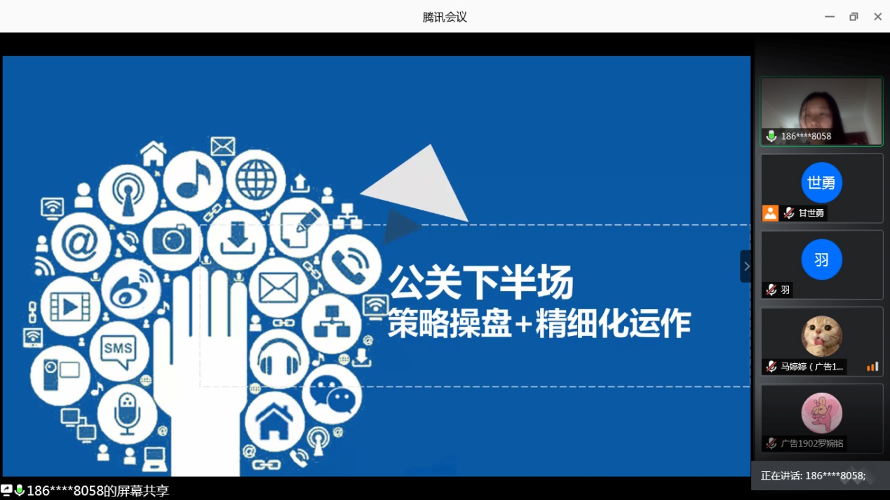 江秋莺学姐深耕公关界多年,具有丰富的实战经验和对于行业过去未来的深入思考。本次分享会,学姐带领同学们初探公关行业,了解数字公关的发展,以及公关行业在面对数字化发展环境下的机遇与未来,并且分享了丰富的公关案例,引领同学们思考沟通对于品牌的重要意义。