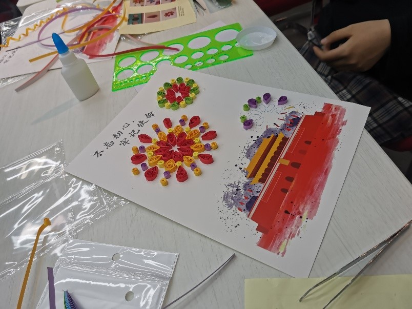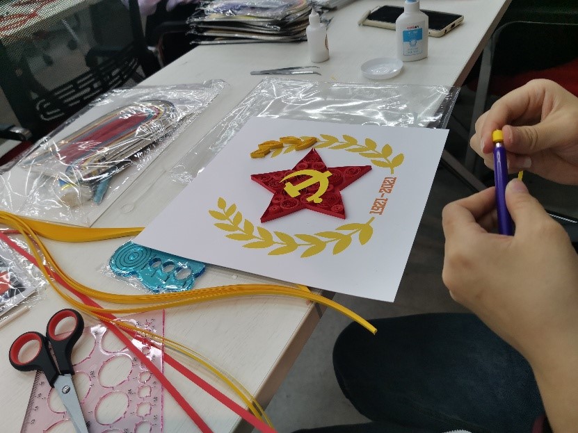5月6日下午,bw必威西汉姆联官方网站心理健康服务中心和服装设计与剪裁协会共同举办“‘艺’‘新’向党,巧手生花”庆祝建党100周年红色手工团体辅导活动,同学们一同制作衍纸艺术作品,将情怀、思想通过衍纸艺术表现出来,献礼建党100周年。公司党委副书记李彬彬,辅导员李思铭、黄启超一同参加活动。