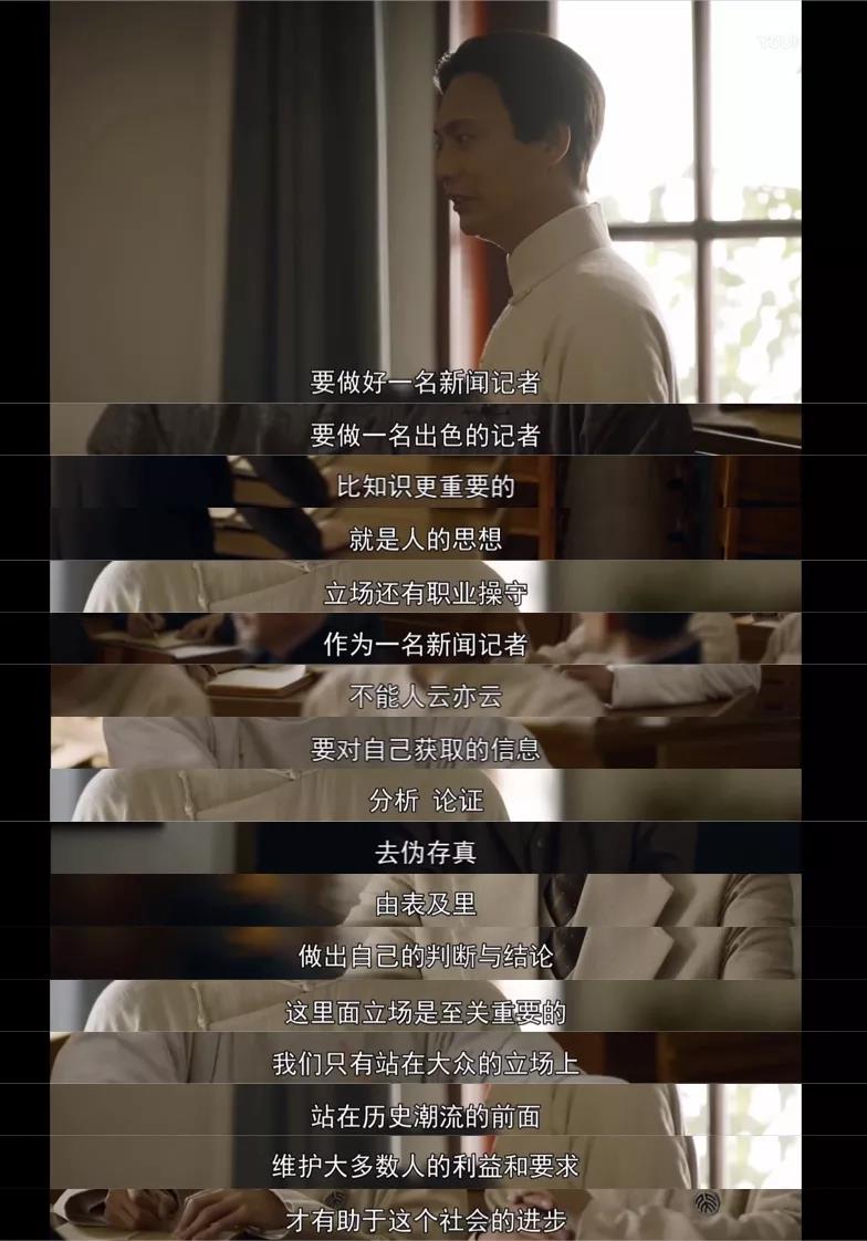 正如《觉醒年代》中这一片段对毛主席新闻观的总结:“要做一名出色的记者,比知识更重要的,是人的思想、立场还有职业操守,作为一名新闻记者,不能人云亦云,要对自己获取的信息,分析、论证、去伪存真,由表及里,我们只有站在大众的立场上,站在历史潮流的前面,才能有助于这个社会的进步。”