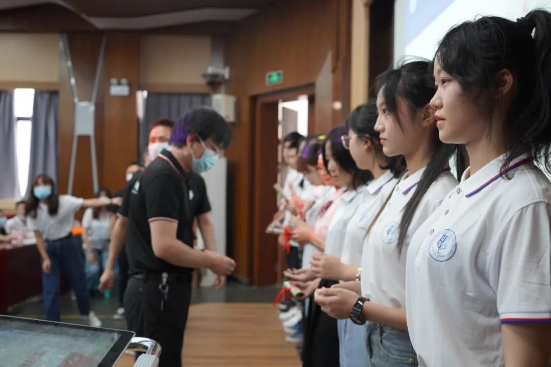 全体起立,高唱国歌标志着典礼的开始,典礼在公司领导、周科员工及教师代表为2021级本科新生代表颁发院徽和生日报纸中进一步展开。