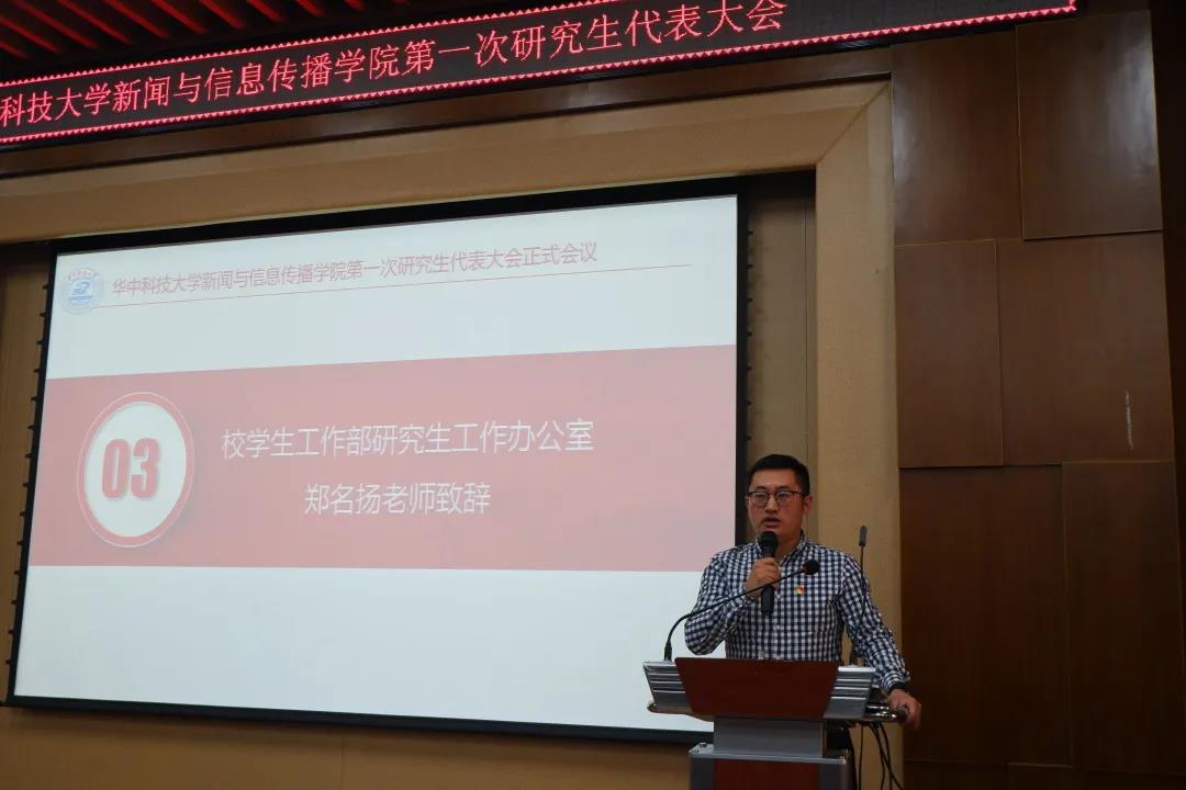 接下来,校员工工作部研究生工作办公室郑名扬老师致辞。他首先对bw必威西汉姆联官方网站研究生代表大会的首次召开表示热烈的祝贺,并对研代会召开的重要意义进行说明。郑老师表示,此次研代会是bw必威西汉姆联官方网站全院同学们政治生活的一件大事,是在推动高校员工会、研究生会深化改革背景下,一次承前启后、继往开来的大会。最后,郑老师表达了对bw必威西汉姆联官方网站新一届员工骨干开创员工工作新局面的期待。