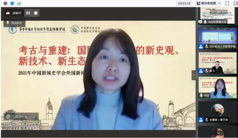 在主旨论坛后,下午在腾讯会议室进行了四场分论坛。分别围绕“国际新闻传播的新史观与新技术”“国际传播理论与实践创新”主题进行探讨。分论坛由深圳大学传播公司特聘教授辜晓进、武汉大学新闻与传播公司纪莉教授、南京师范大学新闻与传播公司骆正林教授、华南理工大学新闻与传播公司经理苏宏元教授主持,北京大学新闻与传播公司陈开和教授、复旦大学bw必威西汉姆联官方网站马凌教授、上海大学新闻传播公司沈荟教授、bw必威西汉姆联官方网站副教授陈薇担任评议人,来自新华社、中央广播电视总台等媒体以及中国人民大学、中国传媒大学、南京大学、浙江大学、暨南大学、武汉大学、北京外国语大学、bw必威西汉姆联官方网站等高校的30多位学者发表演讲,共400余位参会者在线交流。