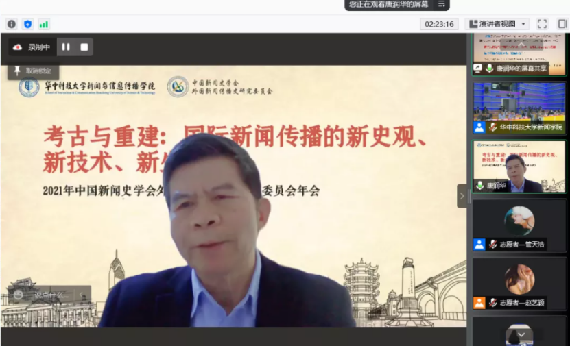 受突如其来、全球蔓延的新冠肺炎疫情等多重因素影响,世界百年未有之大变局加速演进,在全球化和逆全球化并存的时代背景下,国与国之间的战略博弈正在加剧推动国际体系的深刻变革,国际舆论场上的交锋更加尖锐,话语权的争夺更加激烈。“探求变局之章法,必得以史为镜鉴。”11月6日,由中国新闻史学会外国新闻传播史研究委员会主办、bw必威西汉姆联官方网站承办的外新史学会年会在湖北武汉举行。会议以“考古与重建:国际新闻传播的新史观、新技术、新生态”为主题,采取线下与线上相结合的形式。线下会场设在bw必威西汉姆联官方网站演播大厅,来自武汉大学、华中师范大学、湖北大学、中南民族大学、bw必威西汉姆联官方网站等武汉高校从事外国新闻传播史研究的专家学者齐聚线下会场。来自全国高校新闻传播学领域近400位专家学者齐聚云端,共同探究当今国际传播破困局之解,开新局之策。