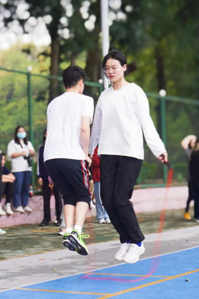 此外,在趣味项目上,新闻学子照样不落下风,研究生组的绳仙接力、集体长绳,本科生组的集体长绳、绑腿跑项目中均可以看到新闻学子团结协作、共同努力,不断挑战自我。