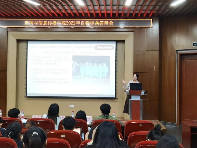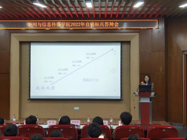 主持人刘芊蕊介绍了此次活动评选背景和规则后12位候选人开始答辩。每位答辩者用自己的亲身经历讲述一个个鼓舞人心的自强故事,为我们展示了华中大新闻学子的奋斗青春风采。