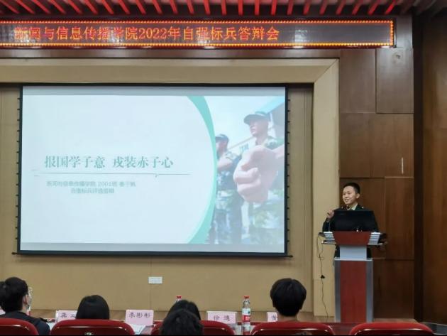 传播2001班秦宇帆从小有个军旅梦,高考志愿军校,却因体检不合格理想破灭,但他并没有因此放弃自己的理想,并通过自己的不懈努力成为了一名光荣的火箭军战士。在部队服役期间,他刻苦训练,奋勇争先,获得了多项荣誉,他还用镜头去记录部队生活,并在“东风快递”、“中国火箭军”等官媒上发表。退伍后,他协助武装部开展国防教育、征兵宣传并担任退伍老员工社团“I军团”主席,用行动践行“退伍不褪色”的铿锵誓言。