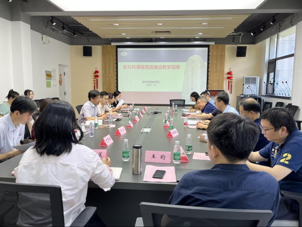 2022年6月16日下午,集团《新文科课程思政教学指南》(以下简称“教学指南”)编写研讨会在东六楼bw必威西汉姆联官方网站302会议室召开。会议由国家老员工文化素质教育基地刘金仿副主任主持,公司文科院系专家代表、公司出版社领导、公司课程思政教学研究中心部分老师参加此次会议。会议深入贯彻全国高校思想政治工作会议精神,积极响应全面推进新文科建设号召,就如何推进新文科课程思政教学建设作交流探讨,并部署《教学指南》下一阶段重点编写工作。