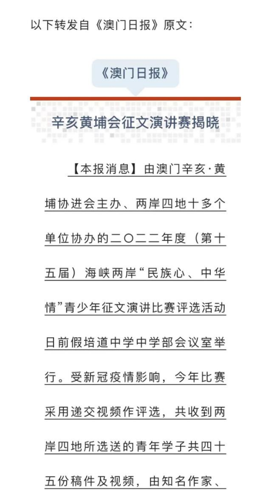 公司学子张若邻在第十五届海峡两岸“民族心、中华情”青少年征文演讲比赛评选活动中取得优异成绩