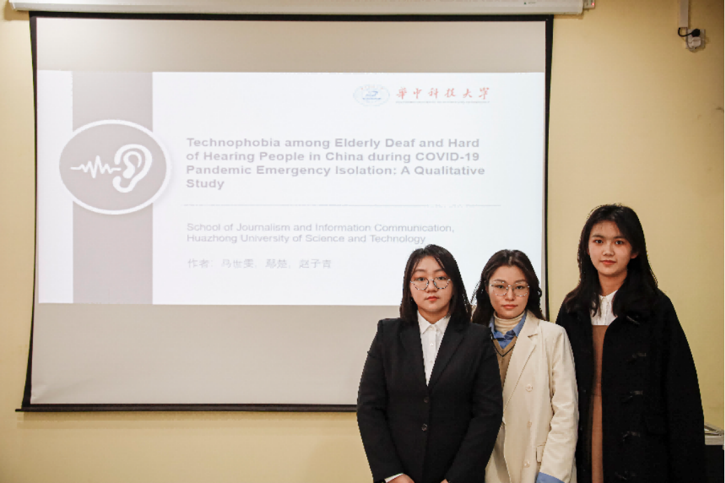论文的成功接收有赖于公司的大力支持、徐迪老师的悉心指导与团队成员的共同努力。在国家级老员工创新创业训练项目优秀结项和首篇一区英文论文顺利发表的基础上,团队成员再接再厉,聚焦于数字精准防疫措施施行后老年听障群体面临的数字融入新困境,展开持续性研究。2021年12月,团队参与了首届智能传播与健康治理国际学术会议(The 1st International Academic Conference on “Intelligence Communication and Health Governance”),在“常态化疫情防控中的公众、信息与社交媒体”工作坊完成了阶段性研究成果的全英文宣读和互动评议环节。