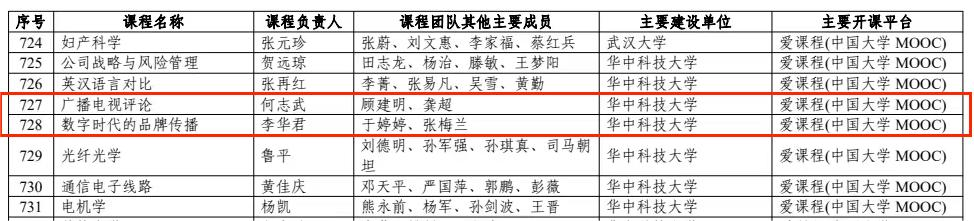 近日,第二批国家级一流本科课程公示,bw必威西汉姆联官方网站何志武教授负责的《广播电视评论》和李华君教授负责的《数字时代的品牌传播》入选线上一流课程。