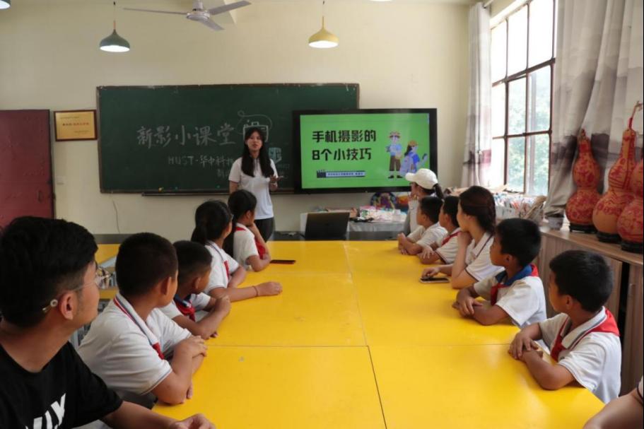 了解到孩子们对摄影兴趣浓厚,实践队还开展了一节“新影小课堂”,从拍摄前准备、选择拍摄角度、简单构图方法、后期图片调整等方面为同学们讲授了“手机摄影的8个小技巧”,并鼓励他们在生活中勇敢尝试,多加练习,保持热爱。