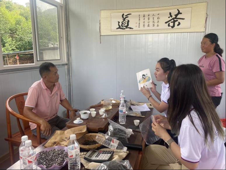 6月27日,实践队前往黄凤明家中调研。2013年,近40岁的黄凤明开始租茶地、建厂房、学炒茶。在他的努力下,不仅和当地村民签订租地合约,承包他们的茶树,还雇佣这些村民帮忙采茶、炒茶、拔草、锄地,为村民们提供了相对稳定的就业岗位和收入。