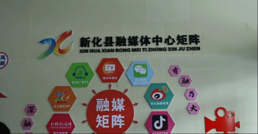 电商助农离不开新化县官方媒体发挥的平台作用。次日,实践队参观新化县融媒体中心,新媒体部门负责人罗忠先生带领实践队参观了新闻采编部门以及演播厅,讲解了如今新化县新媒体矩阵相关布局。在座谈中,实践队师生与罗忠先生就电商直播、品牌推广与传播、传统媒体转型等当下热门话题进行探讨,罗忠先生表示:融媒体中心与新化知名网红都有联络,开展培训、联系供应商、官方流量扶持,我们希望能将流量效益最大化。本次座谈将学界理论和业界实践相结合,了解专业前沿,深化行业认知,为激发城市品牌建设和乡村振兴新动能建言献策。
