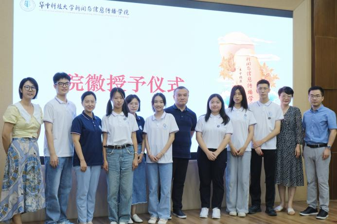 随后,进行院徽授予仪式。各位教师班主任老师为2023级新生代表佩戴院徽。