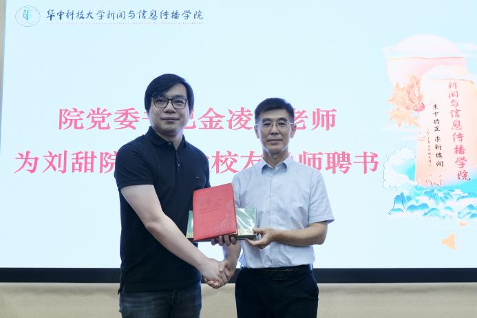 随后公司聘请刘甜学长为员工导师,公司党委书记金凌志为其颁发聘书。