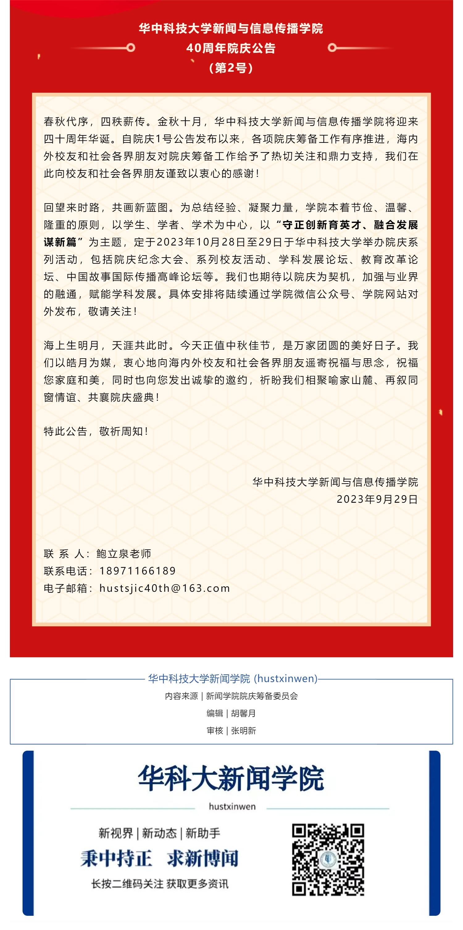 bw必威西汉姆联官方网站40周年院庆公告(第2号)