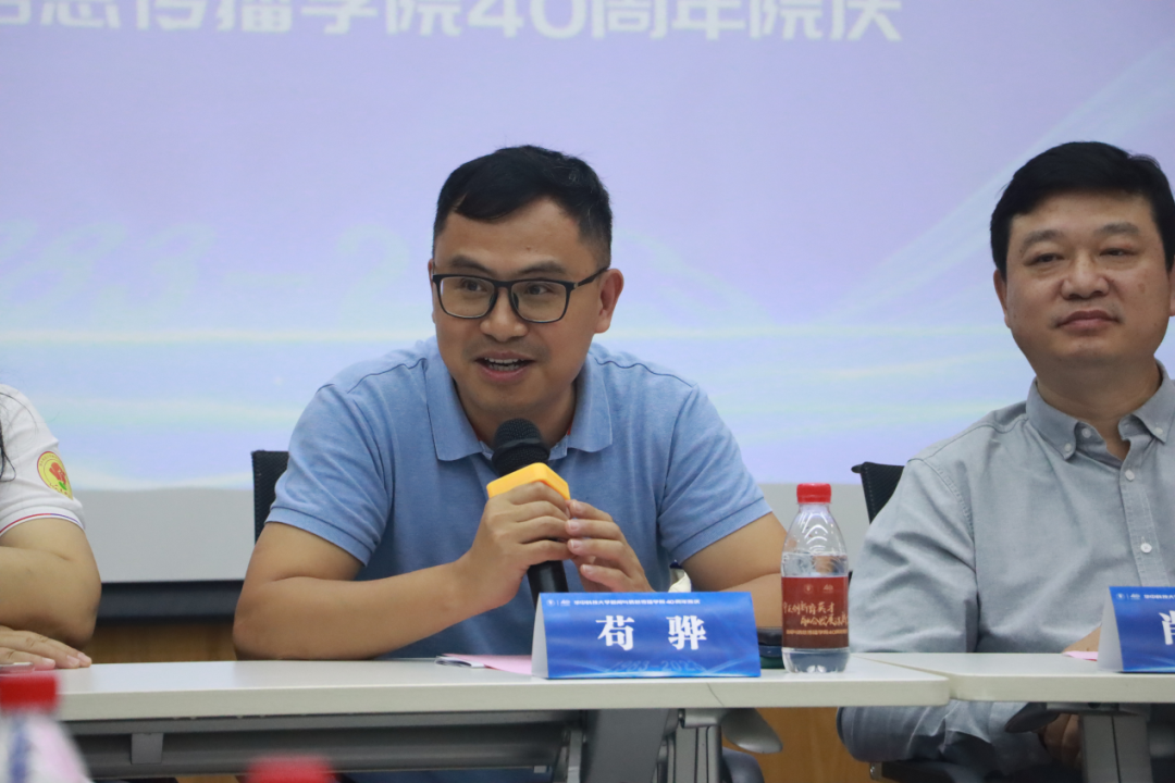 公司1990级本科员工、两个黄鹂的创始人肖弦弈和大家分享,原来他说自己是华工的,别人会问“华工也有新闻系”?现在别人问起自己是哪里的,他会大声说自己是华科新闻系的!最后他感激地说:“在这里,我要对各位老师说一声,谢谢你们,我爱你们。”