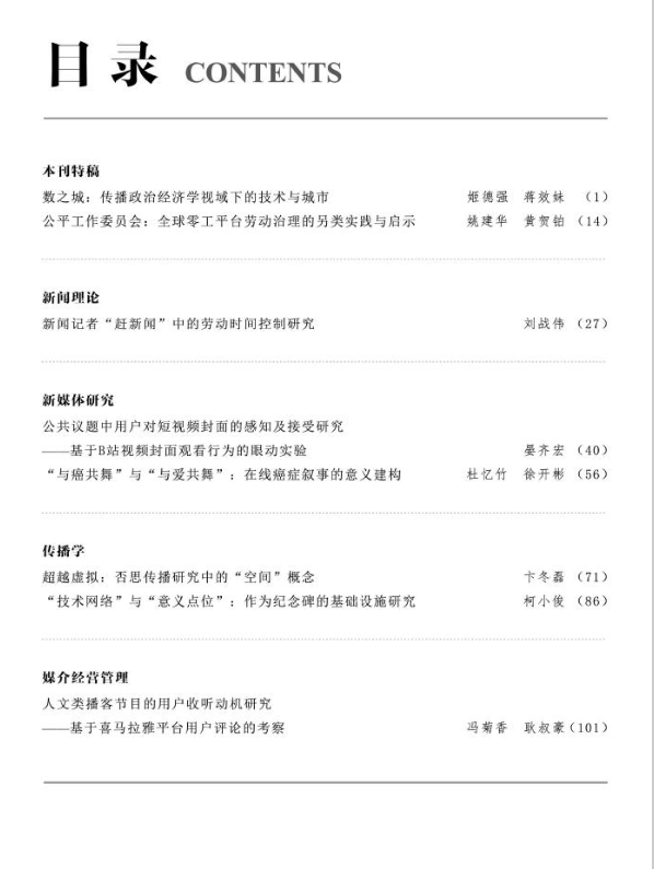 柯小俊博士今年以来先后在《新闻大学》和《新闻与传播研究》发表了两篇关于基础设施文化学研究的学术论文。其中,《“技术网络”与“意义点位”:作为纪念碑的基础设施》一文发表于《新闻大学》2023年第7期。