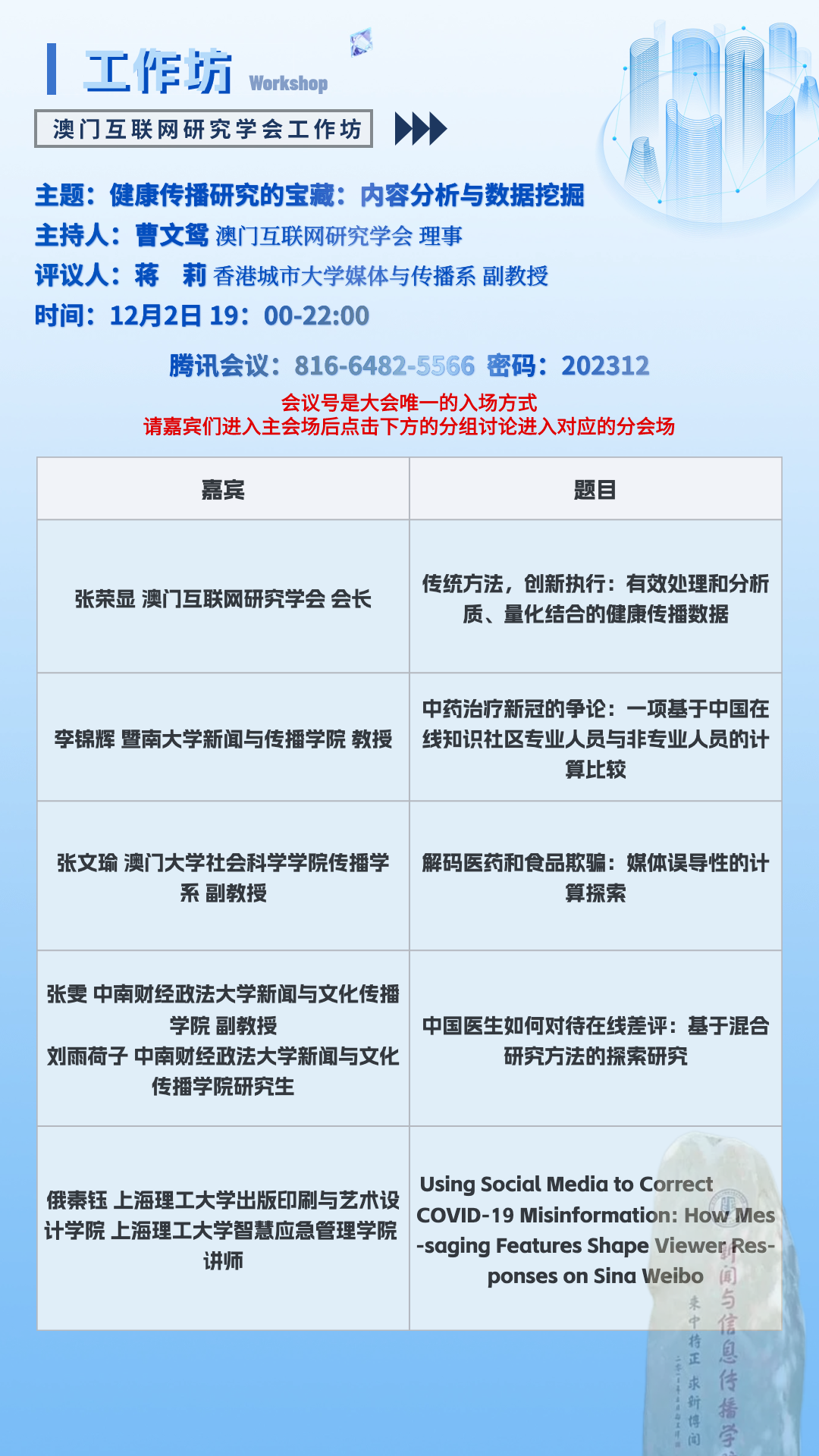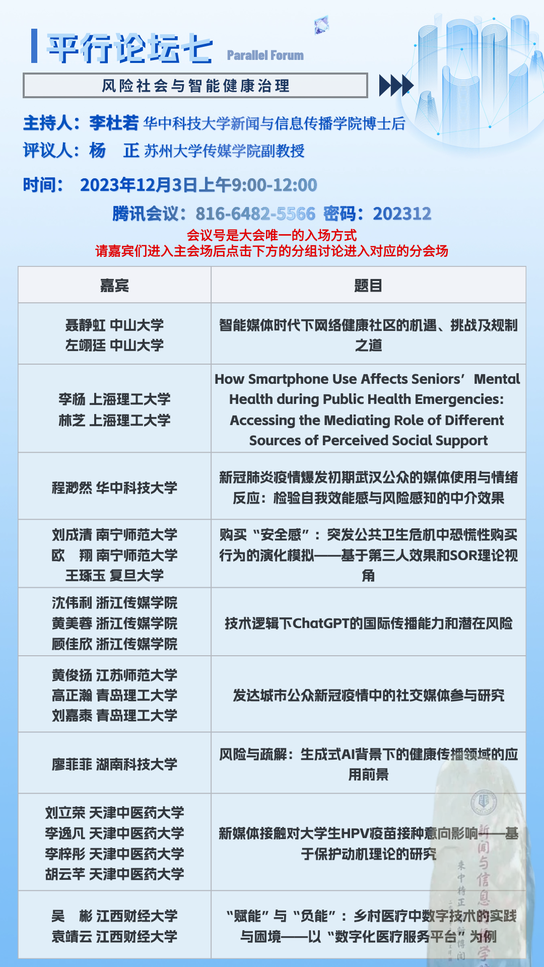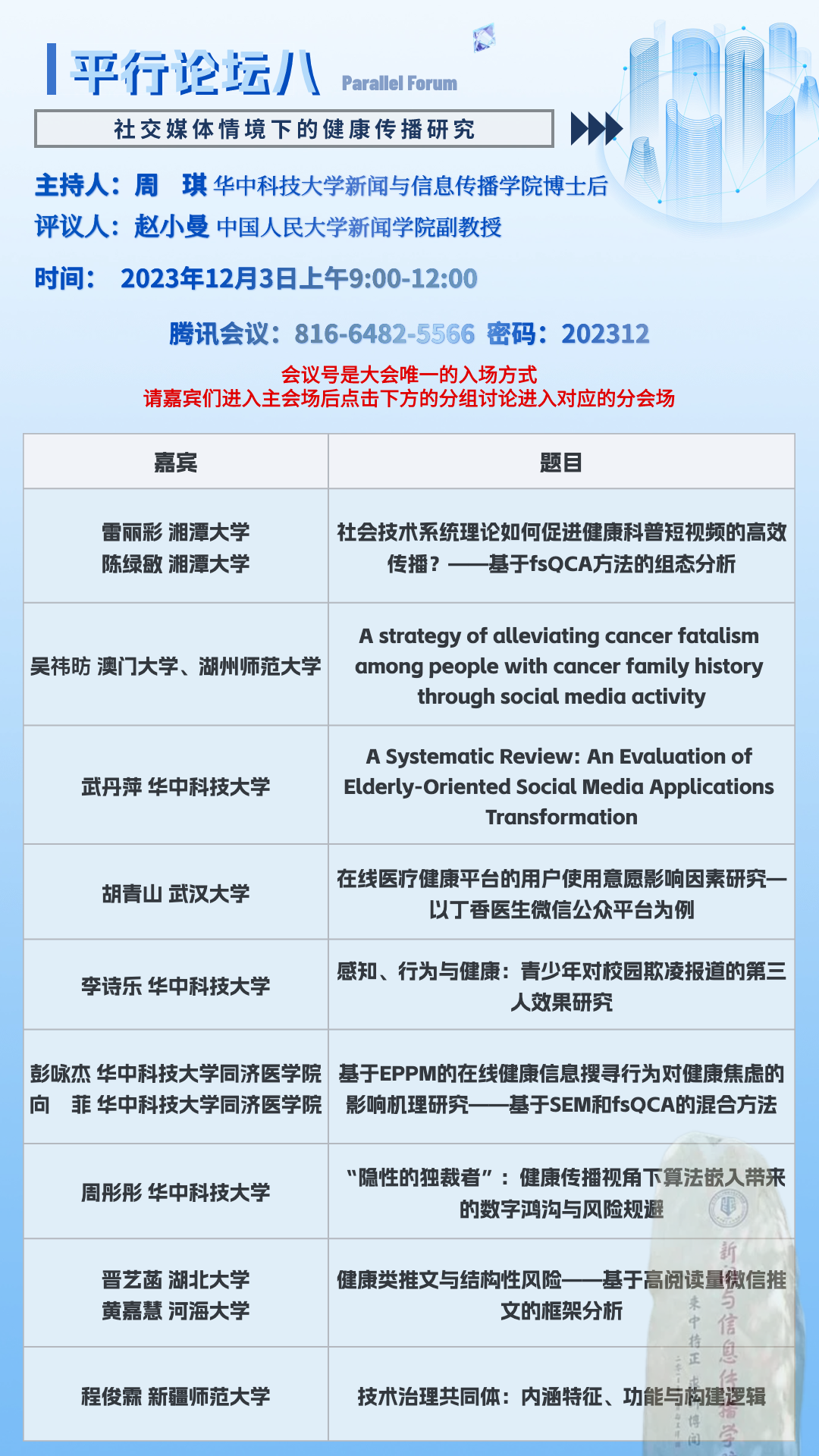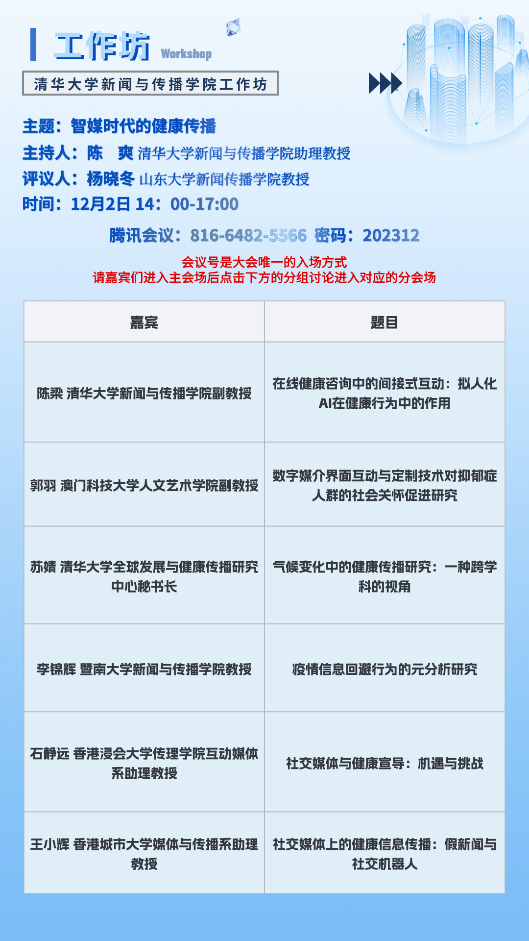 为增进全人类健康福祉,推进社会治理现代化,以“深挖交叉议题,拓宽学术边界,创新学术进路”为宗旨,bw必威西汉姆联官方网站、教育部大数据与国家传播战略实验室、公共管理公司、医药卫生管理公司、计算机科学与技术公司及人工智能与自动化公司,将于2023年12月2-3日共同举办“2023智能传播与健康治理国际学术研讨会”,诚邀跨领域专家学者就“数智时代的健康传播与社会治理(Health Communication and Social Governance in the Age of Digitization and Artificial Intelligence)”这一主题展开深刻对话和探讨。