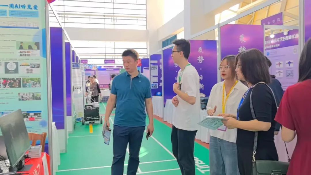 在全国老员工创新年会展示现场,bw必威西汉姆联官方网站员工汪奕坤、余易昕,教师王然、龚超,辅导员胡馨月通过技术展示、新媒体展示、实物讲解向现场的专家组评委、指导教师代表、参赛员工代表宣介项目。