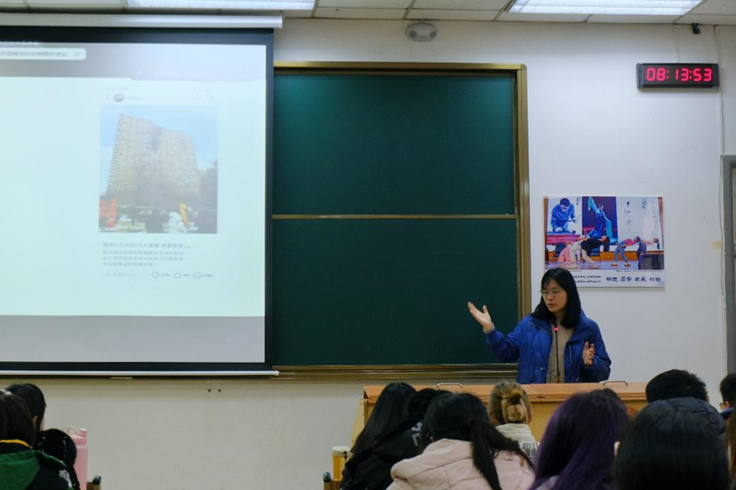 牛静老师的这门《新闻传播伦理与法制》主要从传播伦理与法的视角来分析新闻热点事件和各种社会现象。在第一课上,牛静老师以南京“2·23”火灾为例,讲述悲剧事件的报道角度,提醒同学们对悲剧事件中报道者的绝对化思维保持警惕。同时,她介绍了这门课程的内容架构与授课方式等。她提醒员工要持续从专业的角度关注新闻、关注媒体现象。