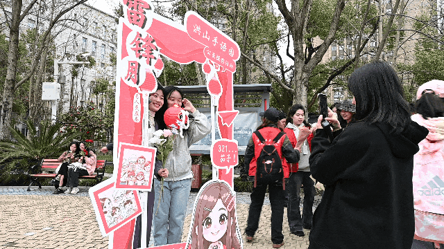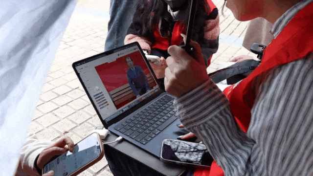 同时,志愿者们还带领大家穿越进了一段奇妙的“旅程”。运用AI技术,大家虽然身处旺山公园,但影像却留在了长江大桥、江南水乡、桃林深处……科技的发展,让“坐地日行八万里”真正成为可能。