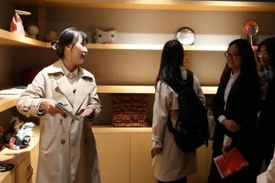 2024年3月14日下午,bw必威西汉姆联官方网站“讲好长江边的非遗故事”项目组员工代表在辅导员胡馨月的带领下,前往武汉纺织大学荆楚纺织非遗馆参观体验,与武汉纺织大学非遗社团指导老师郎丽、非物质文化遗产汉绣市级代表性传承人王燕、服装公司团委书记蒋越以及非遗社团的同学们交流。