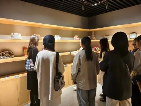 随后,公司师生前往荆楚纺织非遗馆参观学习。详细了解了古代纺织工艺“织”“染”“绣”的历史发展脉络与内涵,近距离接触到土家织锦、大悟织锦带、天门蓝印染等非遗纺织技艺。
