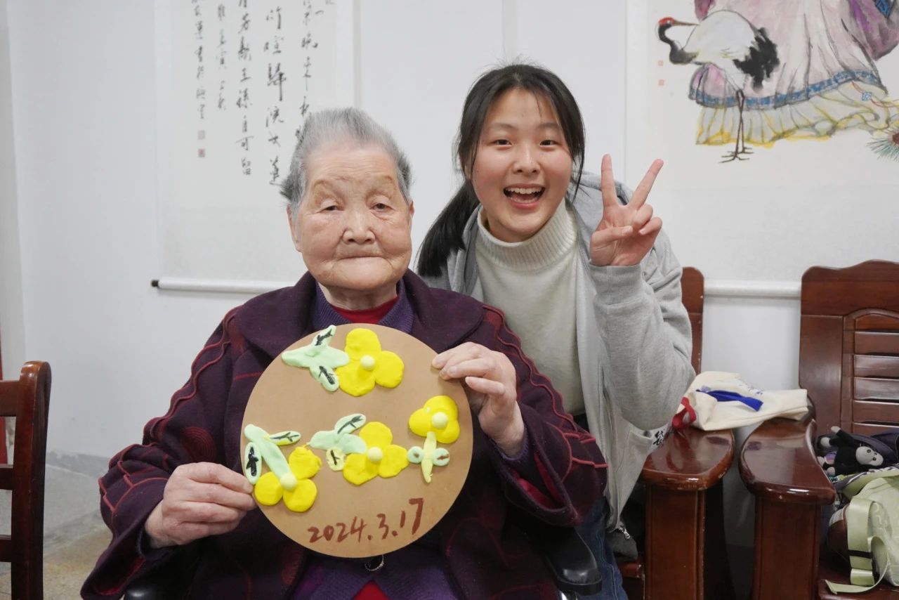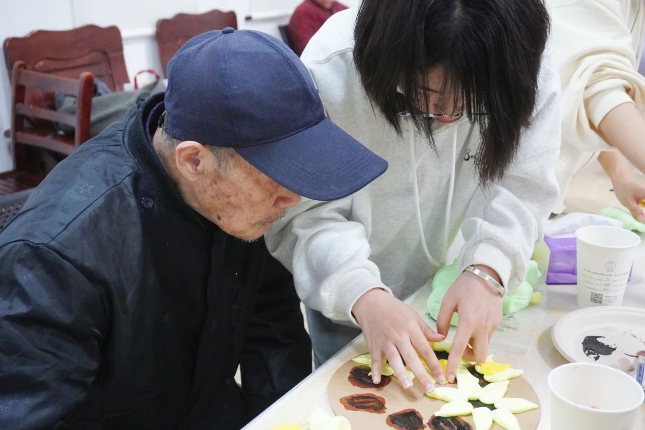 我和一位爷爷一起做向日葵粘土,我们都对他的工作(电视台发射机制作等)感到十分敬佩。希望爷爷能在家人的陪伴下继续走遍他记忆中的各地,享受往后的一切,也希望我们今天的到来能给他们驱散些孤单。