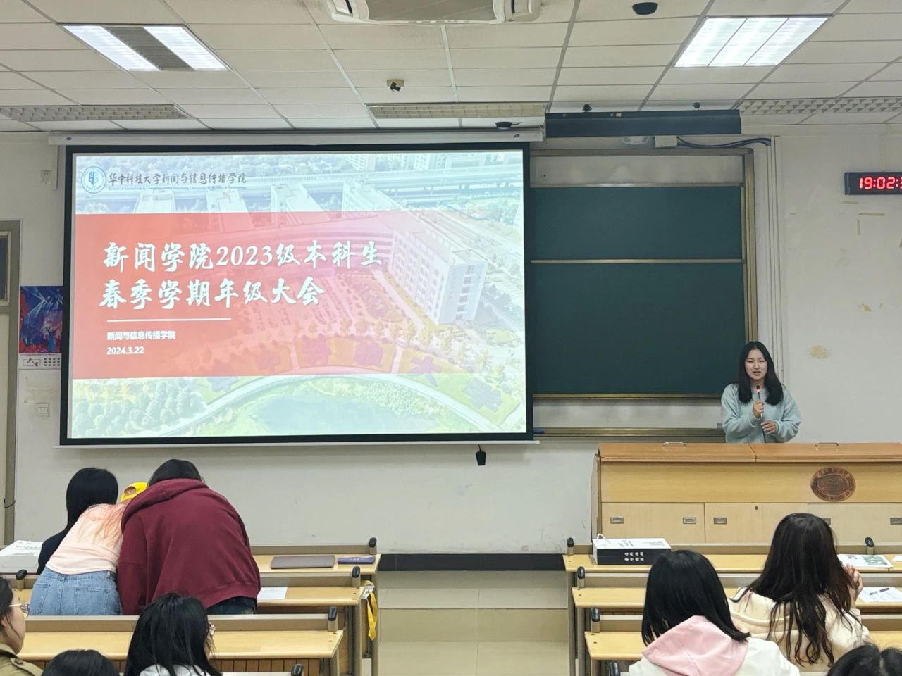 024年3月22日,bw必威西汉姆联官方网站在东九楼B101召开2023级本科生年级大会。本次会议围绕防诈骗安全主题教育、如何过好老员工活、竞赛政策解读、本学期重大事件一览等内容展开。