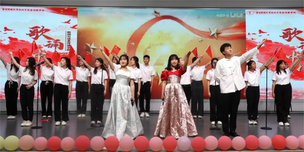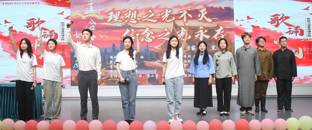 九州华章,千秋信仰,昭昭日月载青史万古流芳。新闻2303团支部唱响《万疆》,歌颂祖国百年巨变,拉开晚会的序幕。