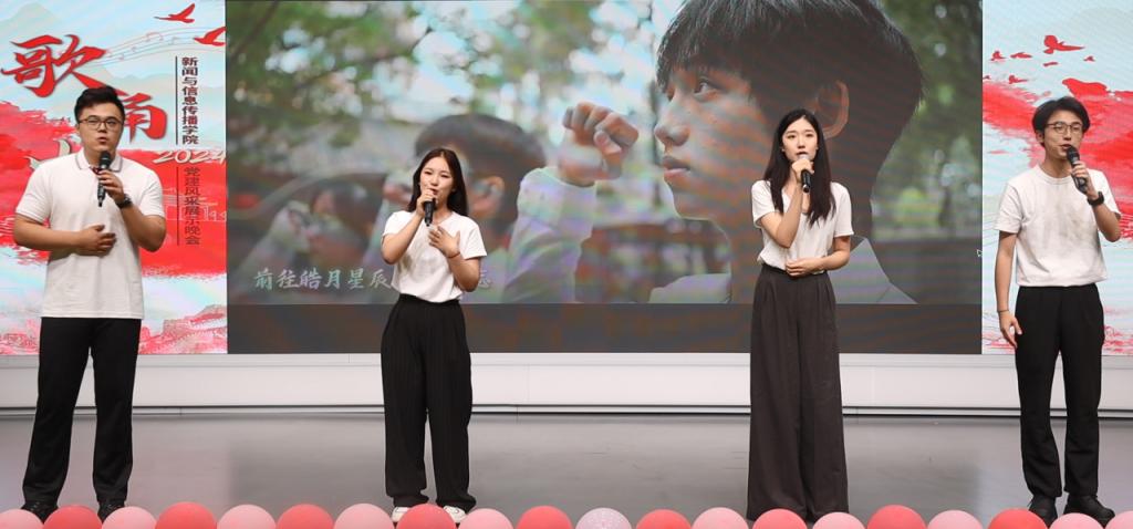 接续传递青春之火、携手共谱新闻华章。新闻2301、2302、2303团支部李娜、朱雨香、黄贞榕、蒲思宇合唱《梦想》。
